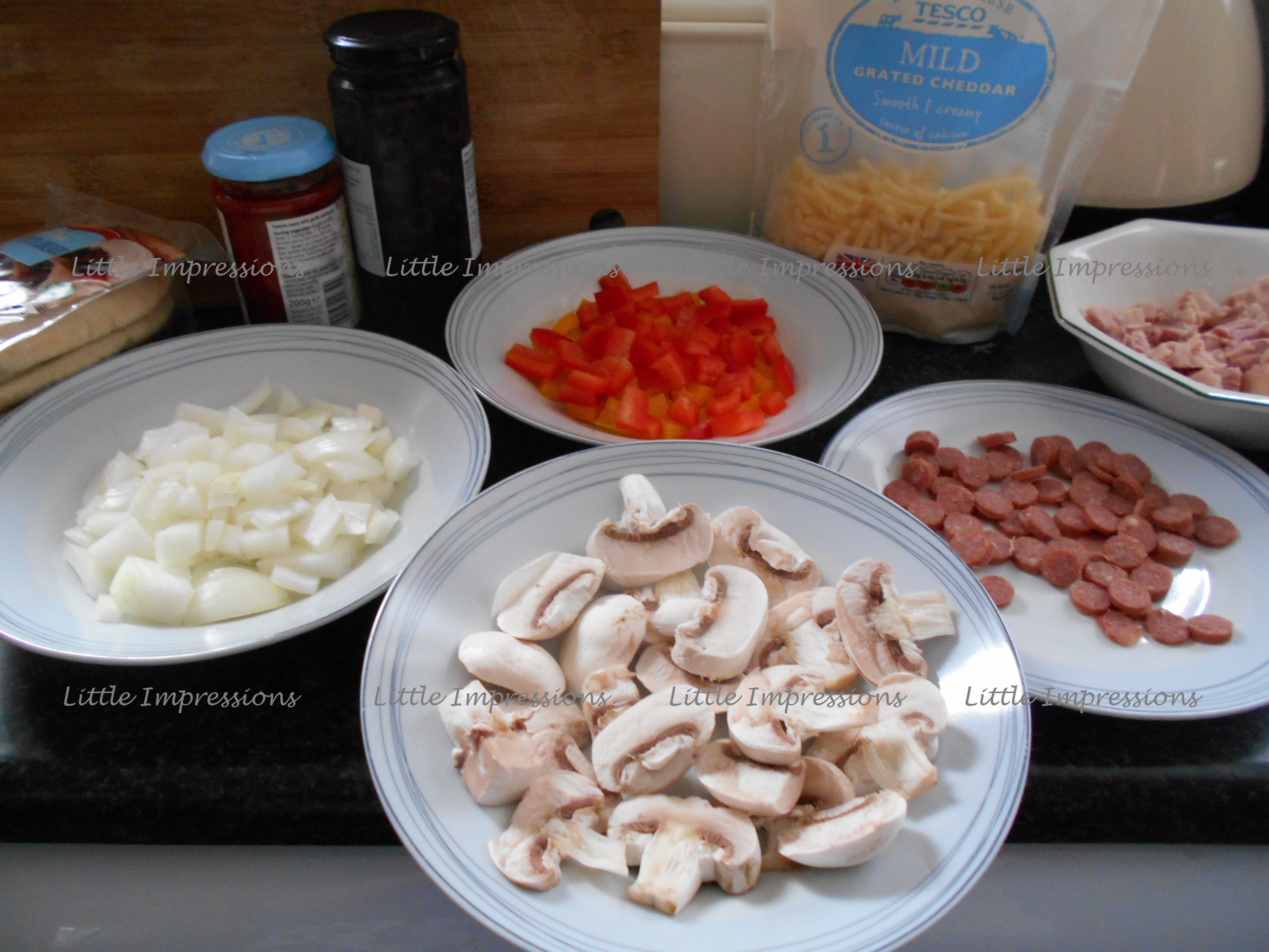 To start with I chopped everything up and placed them in bowls so that everyone could help themselves to what they wanted on their pizzas.