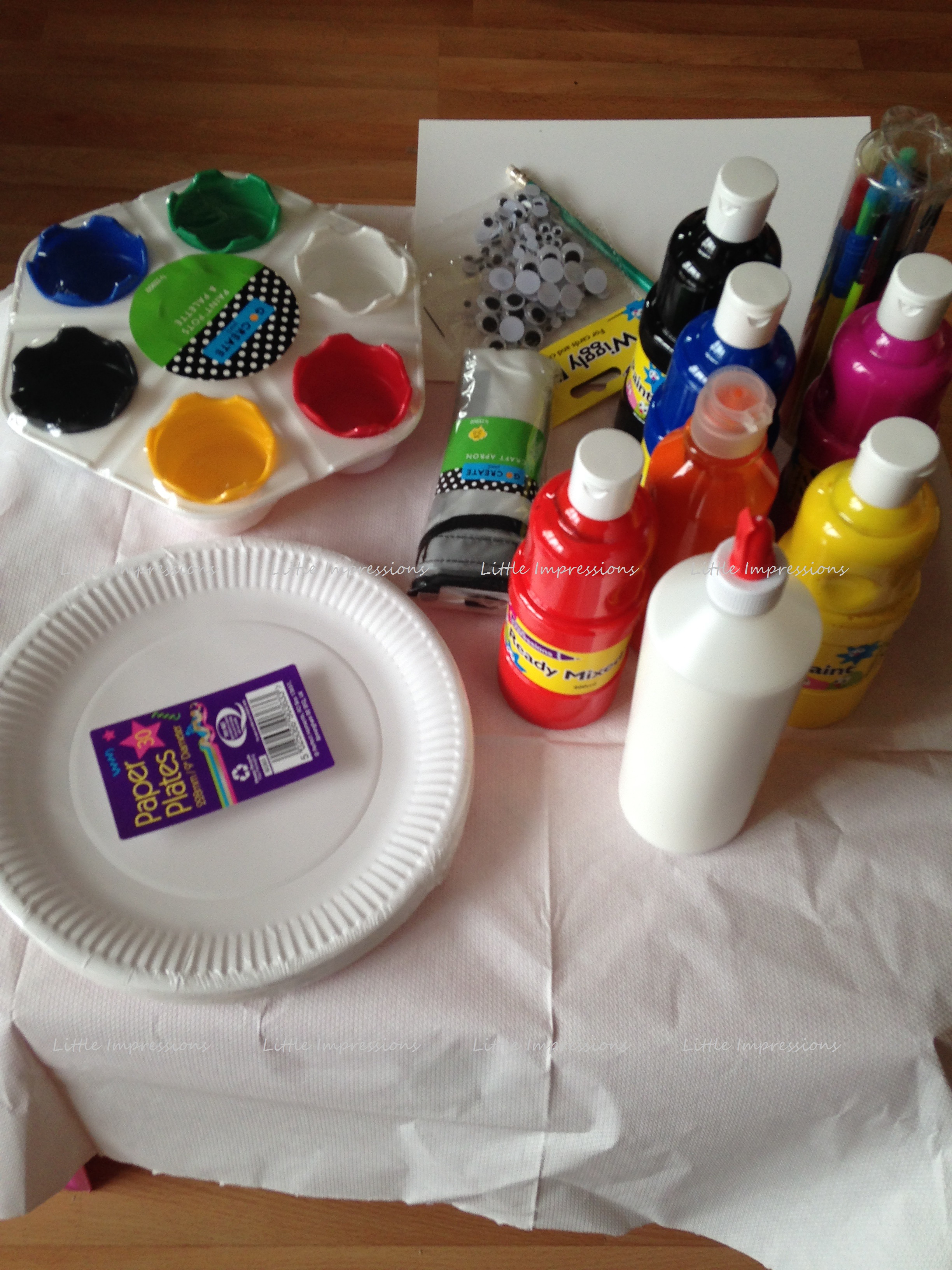 - Various coloured paints – These are premixed and easy to use and also washable so that’s a plus for those messy hands that you worry might touch the sofa or walls. You can find these sorts of paints easy in your local supermarket like tesco or asda.